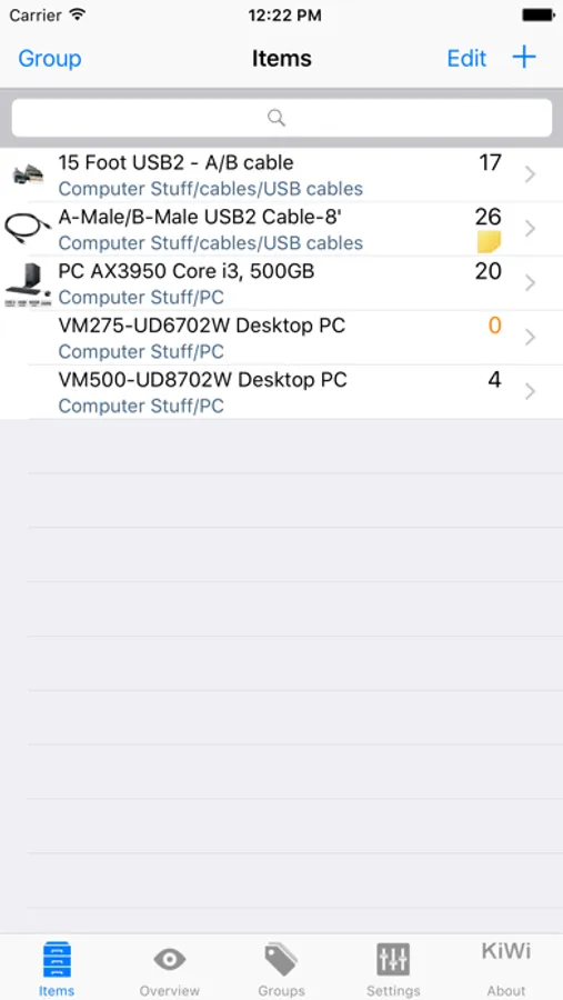 List your items, sort them into categories and associate them with places of storage. Easily manage your inventory level and value.
