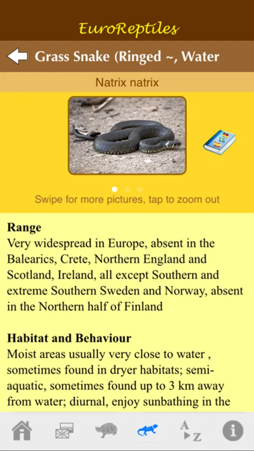 The descriptions of each species can be viewed in English or German language and is supplemented by at least two high-resolution full-screen pictures of each species.