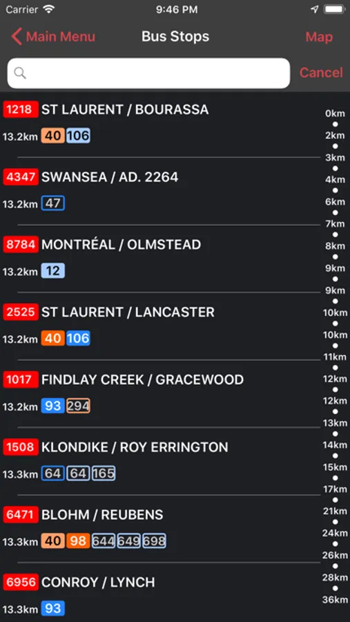 - see bus stops on a map along with StreetView