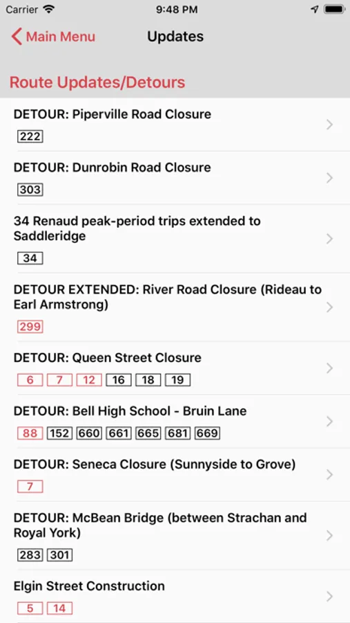 - see OC Transpo system updates regarding route changes