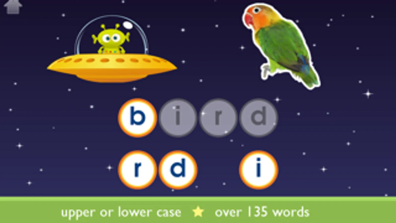 Kids join Zip the alien on an out-of-this-world spelling adventure to build a fancy new rocket. Now with 5 levels of difficulty, kids spell words to fuel his spaceship and help him choose the rocket pieces he needs. Once they have built their custom rocket ship, kids steer it through space to collect stars in an entertaining mini-game.