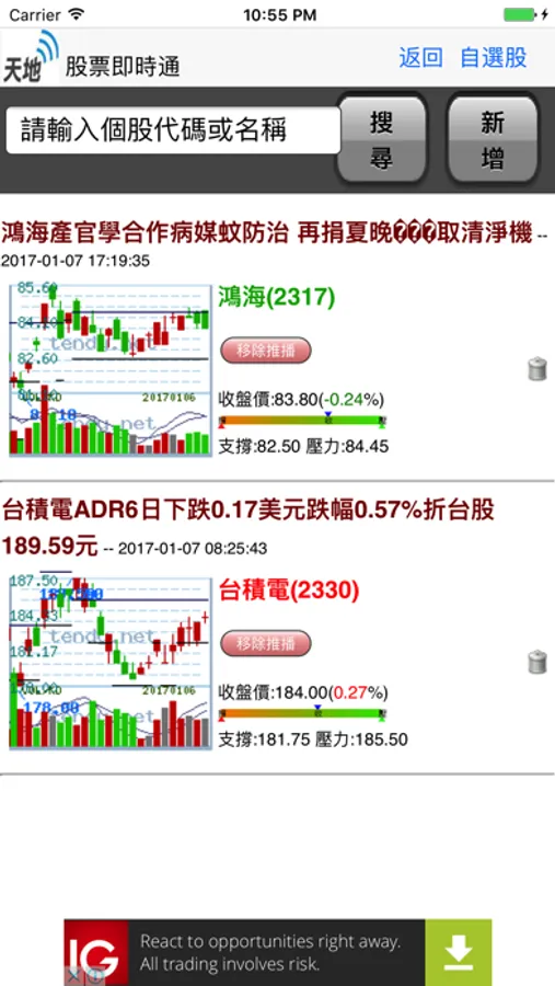 天地股票即時通,能將自選股的新聞即時推播給您,是掌握個股資訊動態的好幫手。