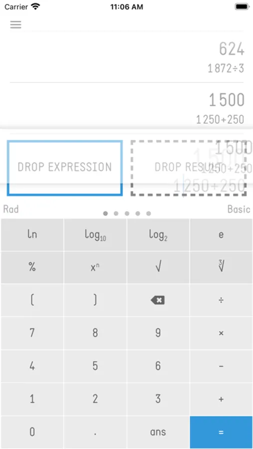 • Drag&Drop: Drag your previously typed calculations on the display for an easier and faster entry.