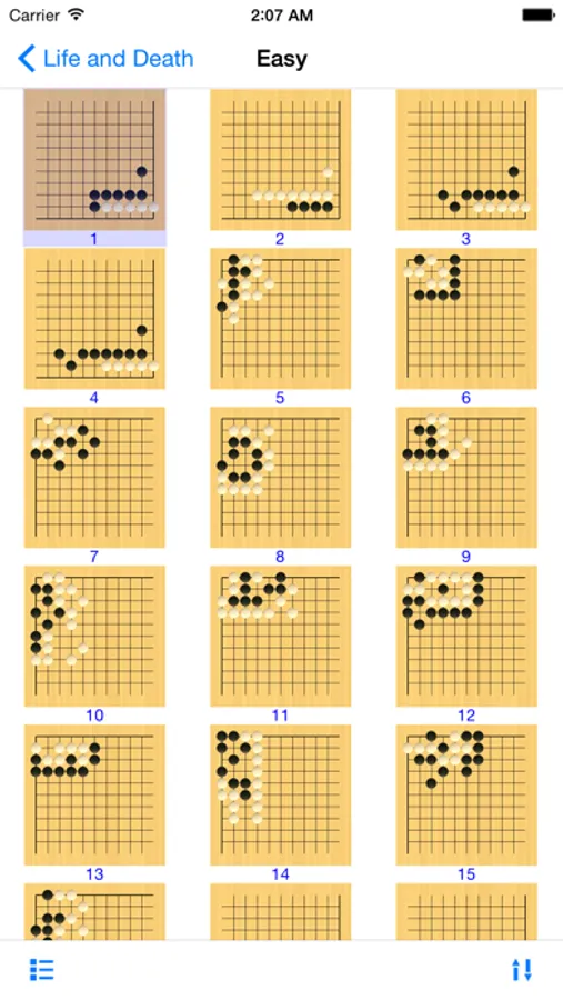 EasyGo has total 2400 problems bundled ranging from basics, life and death, tesuji and endgame. And the 893 problems on life and death have extensive variations built in to respond to all of your possible moves.