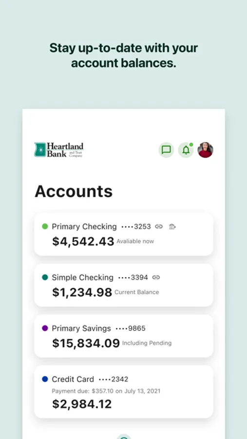 Conveniently connect to your Heartland Bank accounts to check balances, pay bills, deposit checks, transfer money, and more - anytime, anywhere!