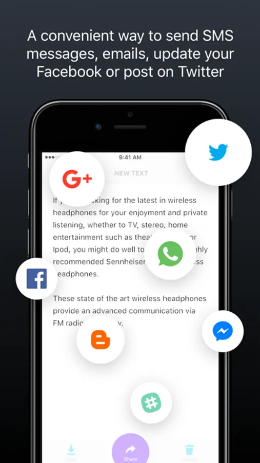 - A convenient way to send SMS messages, emails, update your Facebook or post messages on Twitter