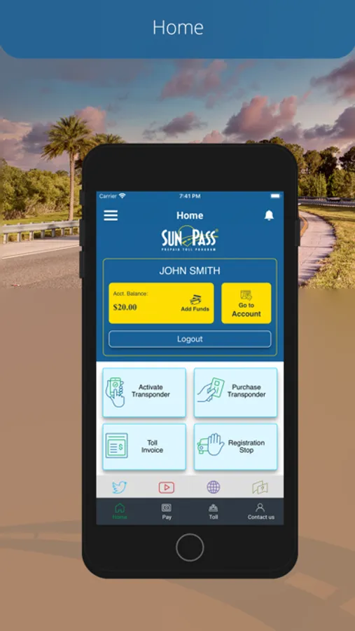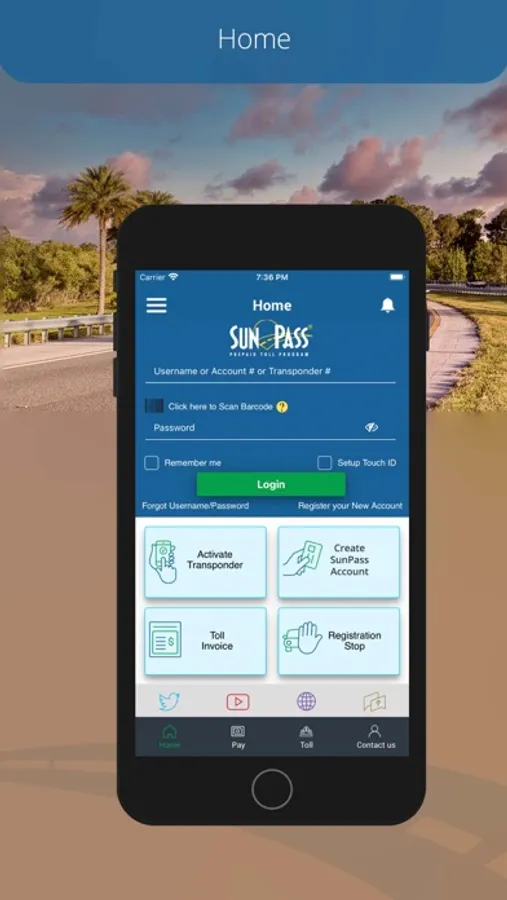 Enjoy the convenience of managing your SunPass account, anytime, just by downloading the app and logging in using the same Account, Transponder Number, or Username and Password established for online account management.