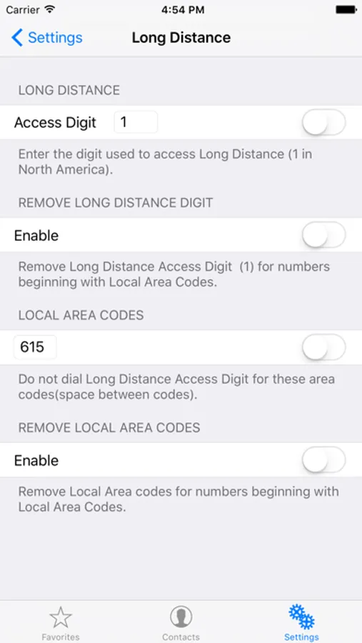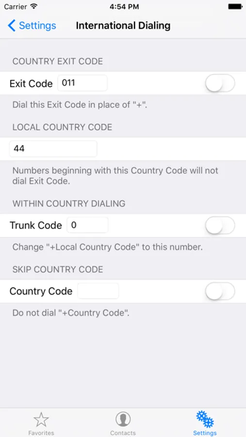 Tone Dial includes several options to "adjust" the numbers in your contacts to work correctly over the land line. For example it can convert numbers starting with "+" into country exit codes so that international calls can be made correctly. It also has options to add or remove "1" from numbers outside your local area code.