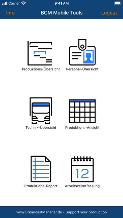 Wenn sie das Client/Server-System Broadcast Manager einsetzen, können Sie es mit dieser APP Ihren Mitarbeitern ermöglichen, jederzeit und sekundenaktuell auf Ihre Personal- und Technik-Planung zuzugreifen, um sich detailliert über eine Produktion zu informieren. Darüber hinaus bietet die APP auch interaktive Möglichkeiten, um direkt vom Einsatzort Daten (z.B. den Produktionsreport, die tägliche Arbeitszeiterfassung der Mitarbeiter oder Memos) in die Datenbank des Broadcast Manager Hostsystems zu senden.