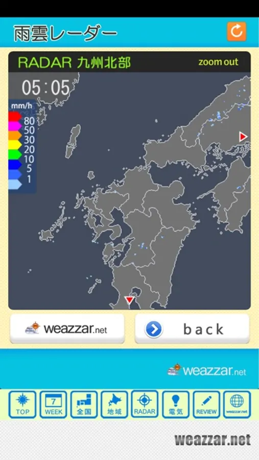 ・雨雲レーダー(5分~10分ごとに更新)