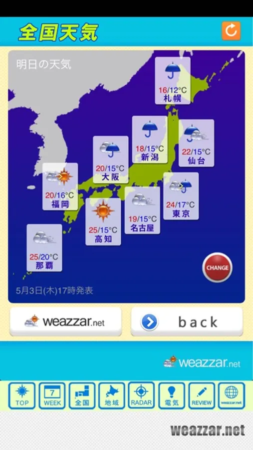 ・週間天気予報(毎日5時 11時 17時に気象庁が発表)