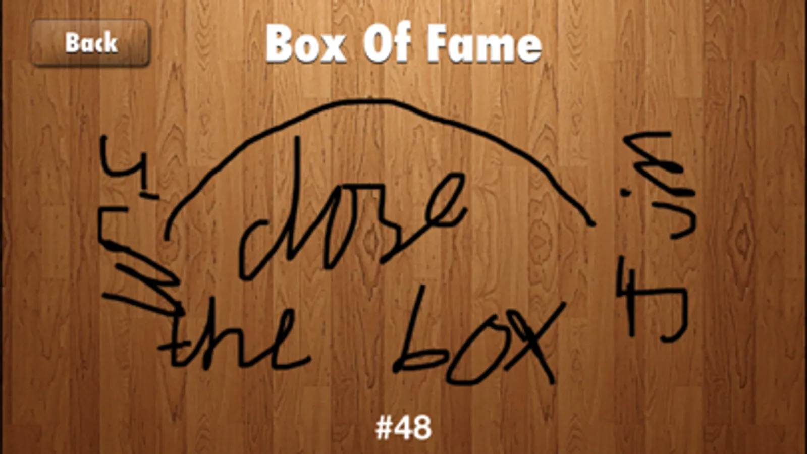 If the player manages to close the box (the probability is pretty low), he has the privilege to write on the 'Box of Fame'.