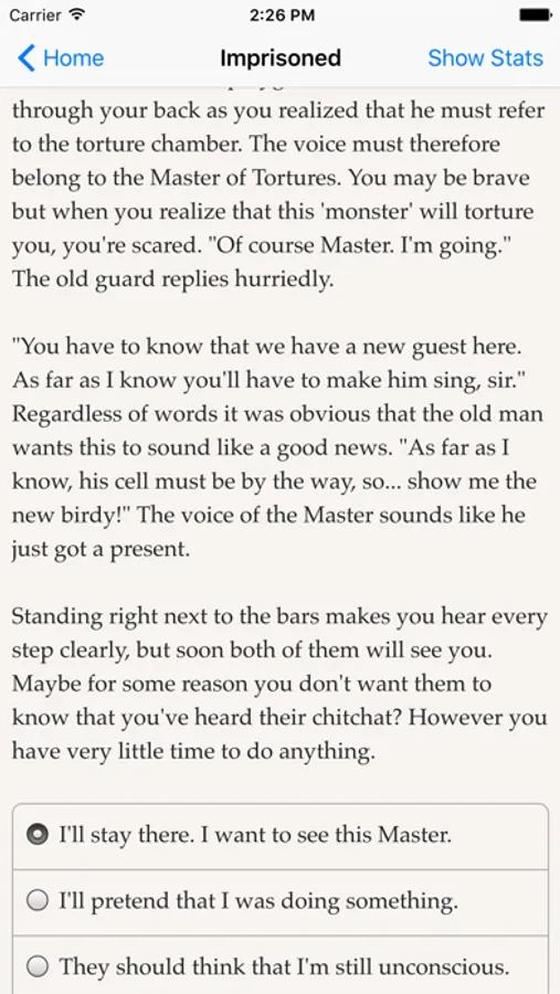 Use your incredible wits, fantastic skills and/or magnificent strength to choose your way out of a heavily guarded prison! Reveal the secrets of the dungeon, meet the mysterious co-prisoner and determine who's responsible for your arrest. Grab your gear and prepare yourself for a hard fantasy quest. Remember, escaping from a prison is not a task for kids or grannies!
