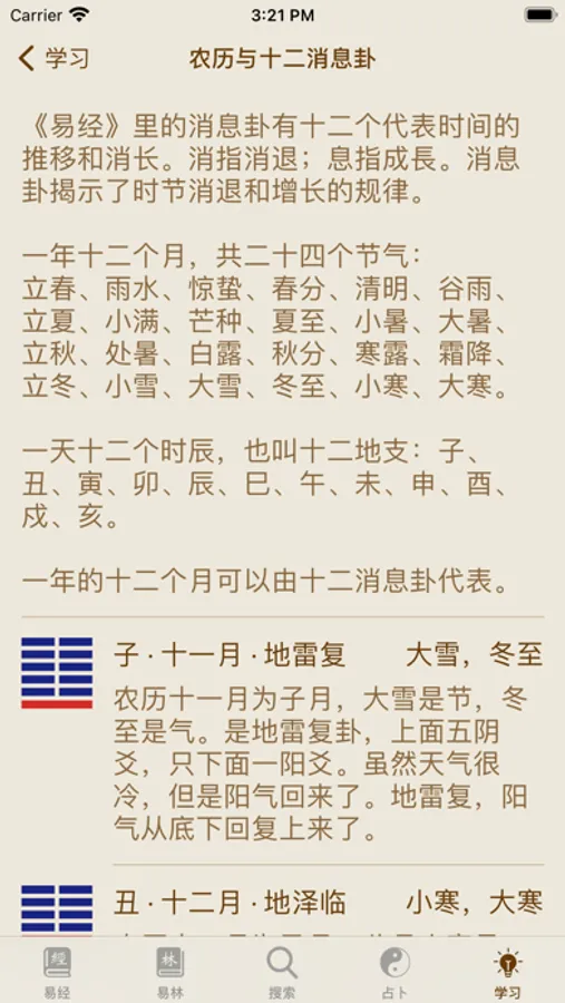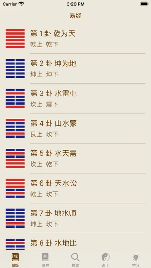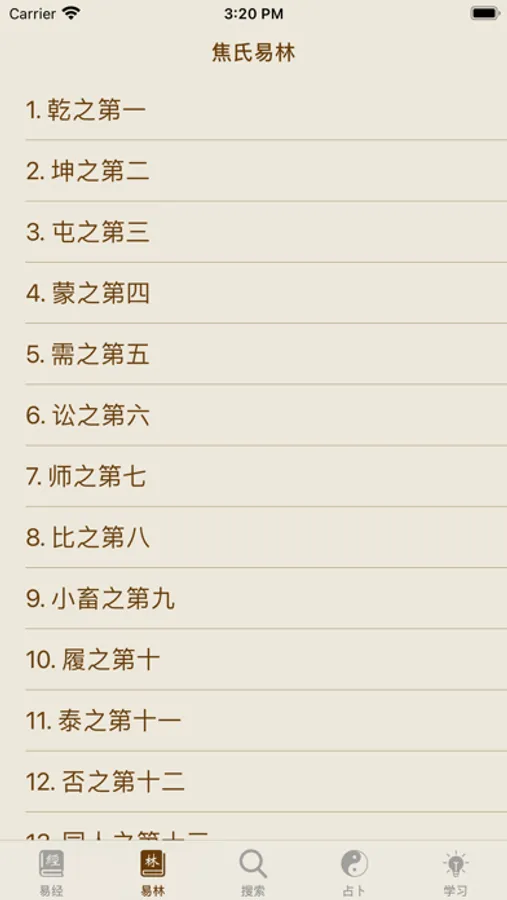 学习易林---新版易经导航HD 收录了《焦氏易林》4096卦,排列于64卦之中,以便习用户对照审阅。占卜者如能融汇贯通,参透易林变化之道,定能更上一层楼,收到不可思义之占卜效果。