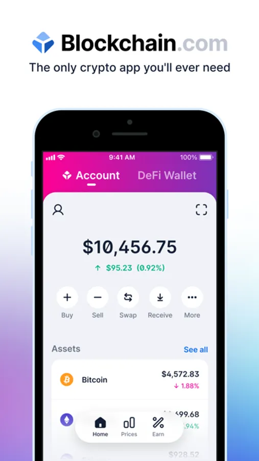 Blockchain.com is the only app that lets you buy crypto with a card or bank account and self-custody your assets—all in one place.