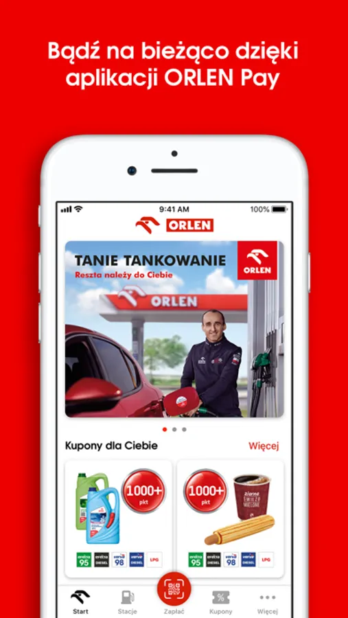 Dzięki aplikacji ORLEN Pay zyskujesz możliwość dokonania zapłaty za zatankowane paliwo bezpośrednio przy dystrybutorze bez konieczności wchodzenia do sklepu. Aby skorzystać z usługi, wystarczy dokonać rejestracji użytkownika. Możesz dodać do aplikacji swoją kartę płatniczą lub skorzystać z innych dostępnych metod płatniczych. Po zatankowaniu należy smartfonem zeskanować kod QR znajdujący się na dystrybutorze, potwierdzić dane transakcji i zatwierdzić transakcję PINem lub poprzez funkcje biometryczne urządzenia. Na podany podczas rejestracji adres mailowy otrzymasz fakturę za dokonaną transakcję. Ponadto możesz przeglądać historię swoich transakcji, edytować dane, zbierać punkty Vitay, czy też korzystać z kuponów promocyjnych. Dodaj swoje karty rabatowe Biznes Tank lub Kartę Dużej Rodziny i korzystaj z przysługujących rabatów. Dodatkowo ta wersja aplikacji umożliwi mobilny zakup wybranych towarów np. płynu do spryskiwaczy. Na wybranych stacjach dokonasz też zakupu kodów do myjni.