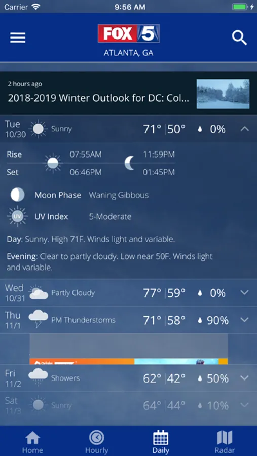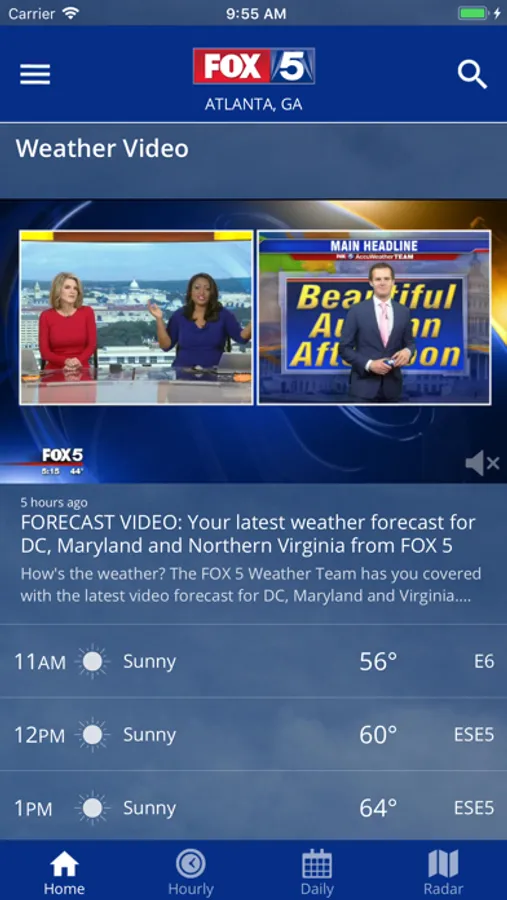 Track your local forecast for Washington D.C., Maryland and Virginia quickly with the free FOX 5 DC Weather app. The new FOX 5 DC Weather App includes a new scroll function that gives you all of the great features you're used to from the app on one easy-to-use screen.