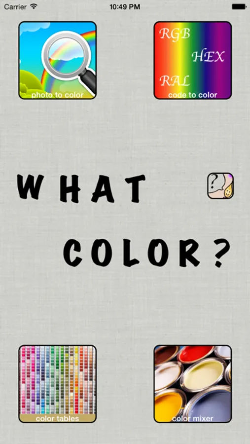 MAIN FEATURES: Identification of the color from any photo, identification of the color from any code, color tables, color mixer, color names and speech synthesis.