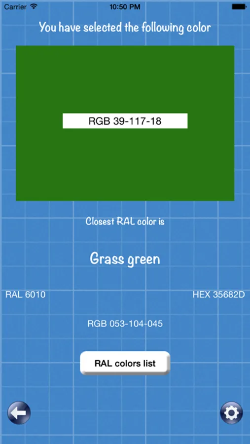 RGB and HEX codes provided a perfect match to the color touched or framed. The RAL (used mainly in paints and coatings) and the name of the color are the result of an approximation algorithm. This is necessary because the application works on a range of 16 million colors, and colors have names that are few hundreds. Therefore, a canary yellow can cover many shades of yellow. Notwithstanding it is possible to compare within the application touching yellow with TRUE canary yellow.