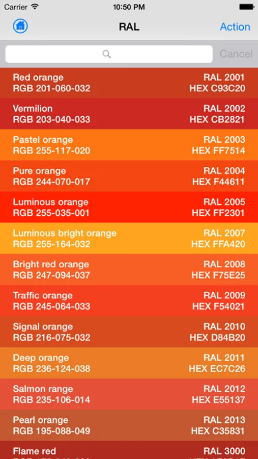 CODE TO COLOR - Identifies the color from any code. The application shows the corresponding color and, if not provided, the name and the code of the RAL color that are closest to the one shown.