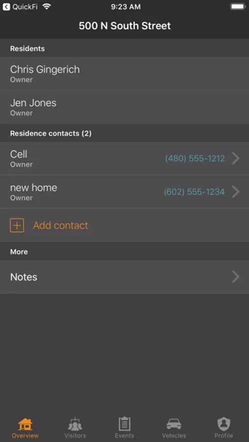 Gives you the ability to add, update and delete visitors, manage events, account information, and view registered vehicles.