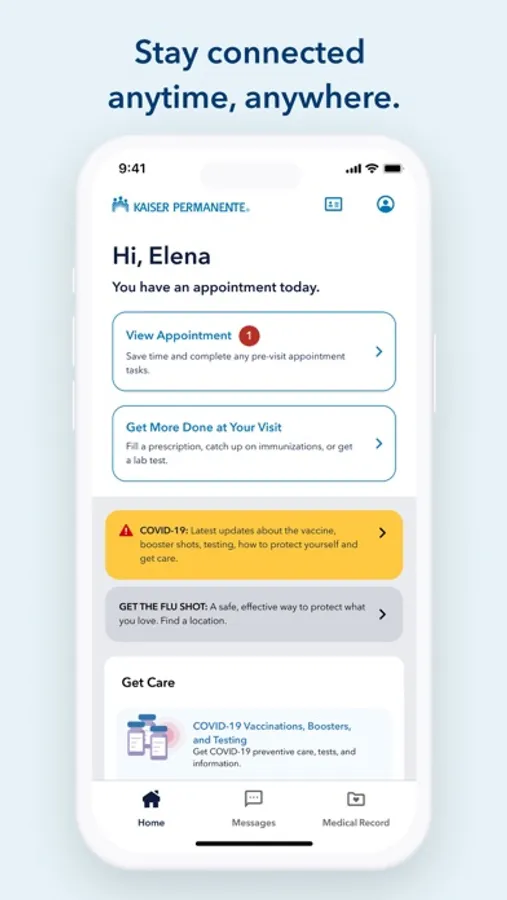 Whether you're at home or on the go, the Kaiser Permanente app gives you a simple, secure way to manage your health — all in one place.