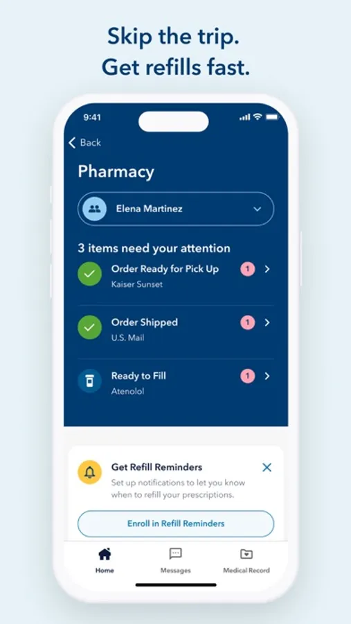 • Fill or refill most prescriptions, check the status of a prescription order, and see a list of all your medications