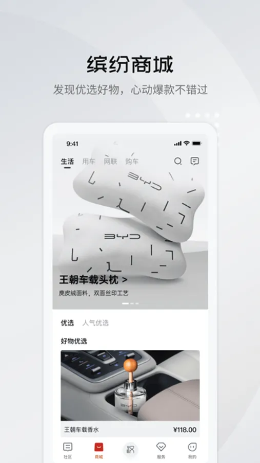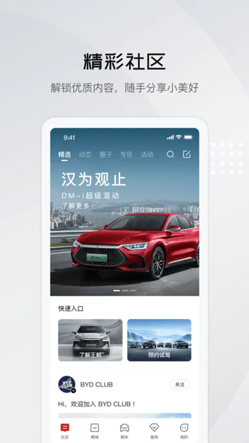比亚迪王朝APP是为用户精心打造的一款集社交、购车、车控、商城及服务于一体的综合性平台。