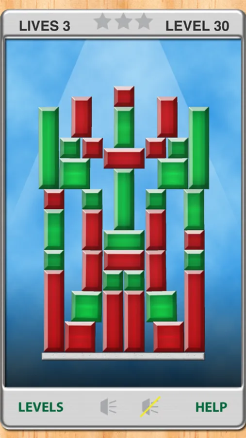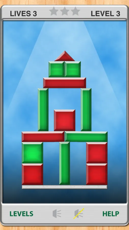 Gem Towers is easy to play but hard to master. See if you can get three stars on each level. Gem Towers is a physics based game that simulates collisions and gravity. The towers are constructed of gems which may vary in size and shape. Your goal is to break all green gems and to save as many red gems as possible. Removing a red gem and gems that go off the platform will subtract one "life". You have 3 lives at the beginning of each level.