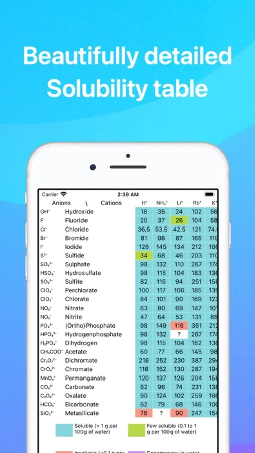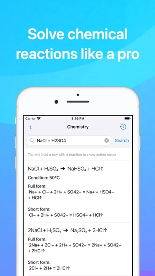 * Solve equations for organic and inorganic chemistry, and view the results in both usual and ionic forms.