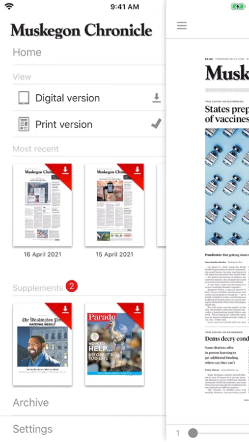 Welcome to the new and improved Muskegon Chronicle eNewspaper app! Enjoy 24/7 access to the eNewspaper. Stay in touch with award-winning local news coverage, daily features, sports, entertainment, special sections and more, right at your fingertips! Your new eNewspaper comes with an enhanced reading experience. Set your reading preference to either the print, replica version or the digital version of the newspaper. Additional features include a 30-day archive, bonus magazines and supplements, image galleries, interactive puzzles and games, ability to share articles with friends and family, and more!