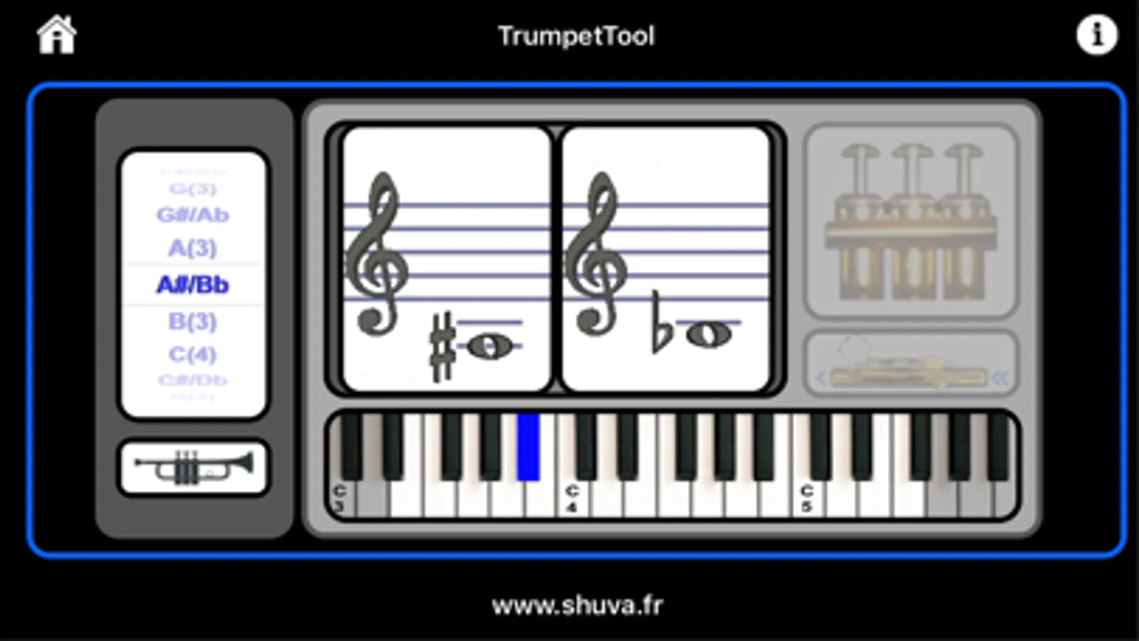 TrumpetTool allows you to match the pitch and fingering from Piano to Trumpet and from Trumpet to Piano.