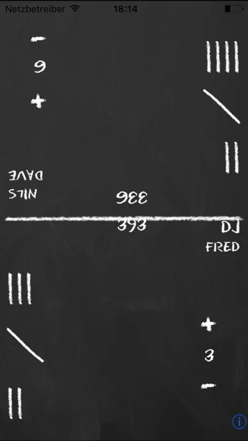 Like a real chalk board used for that, tap on the 20's, 50's and 100's to mark your points. And use swipe to erase the points!