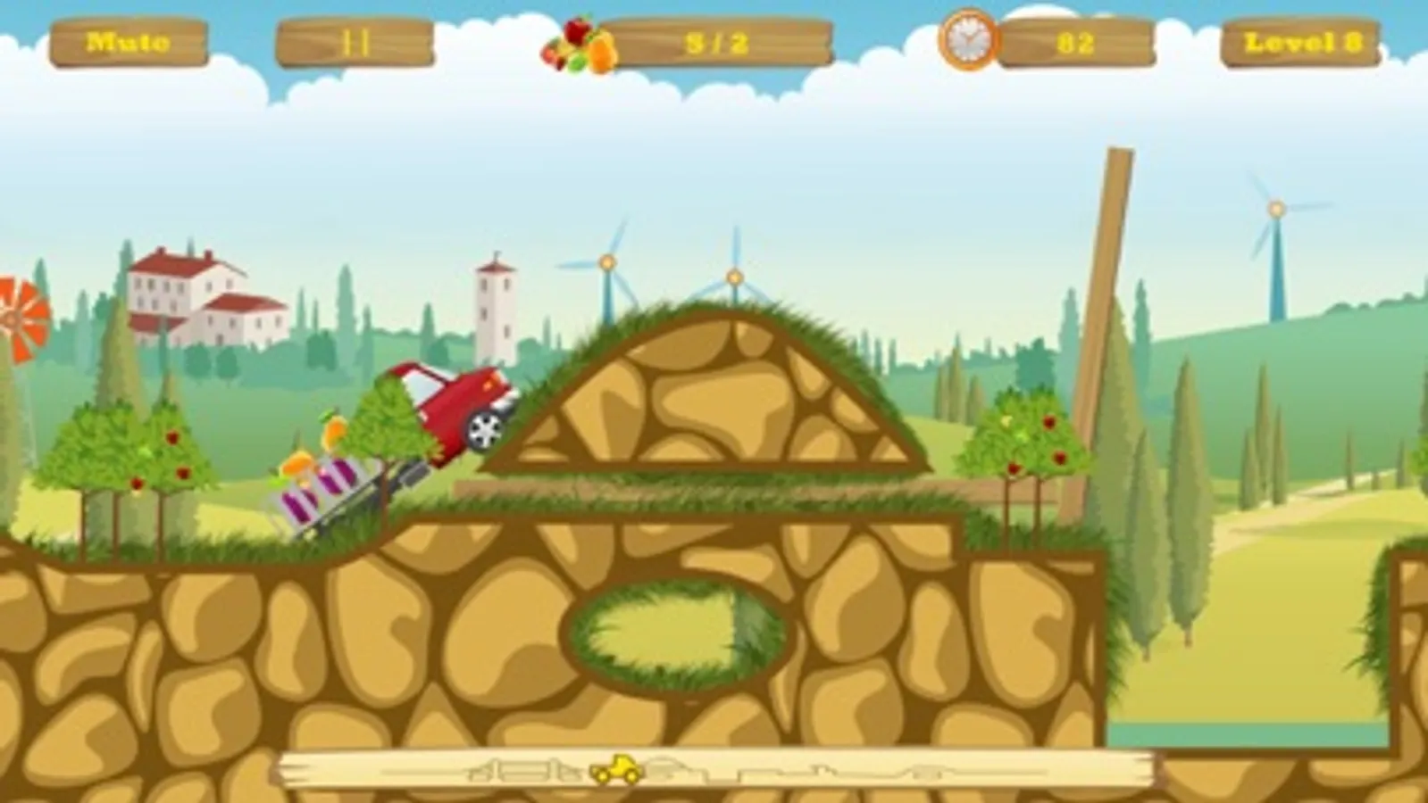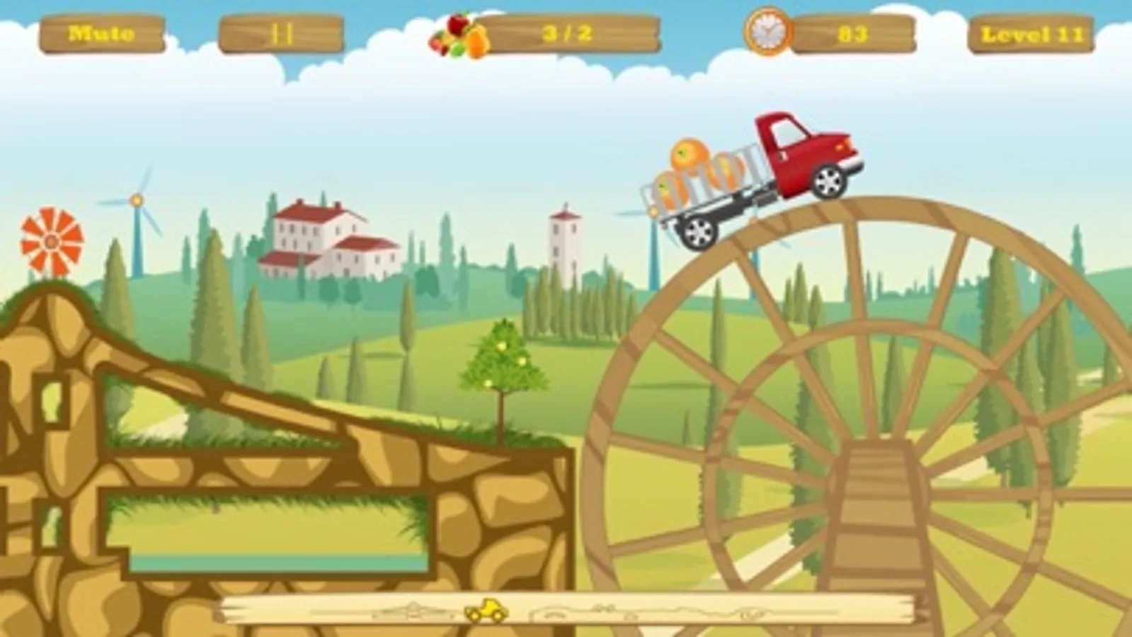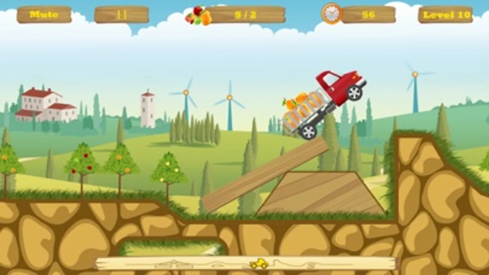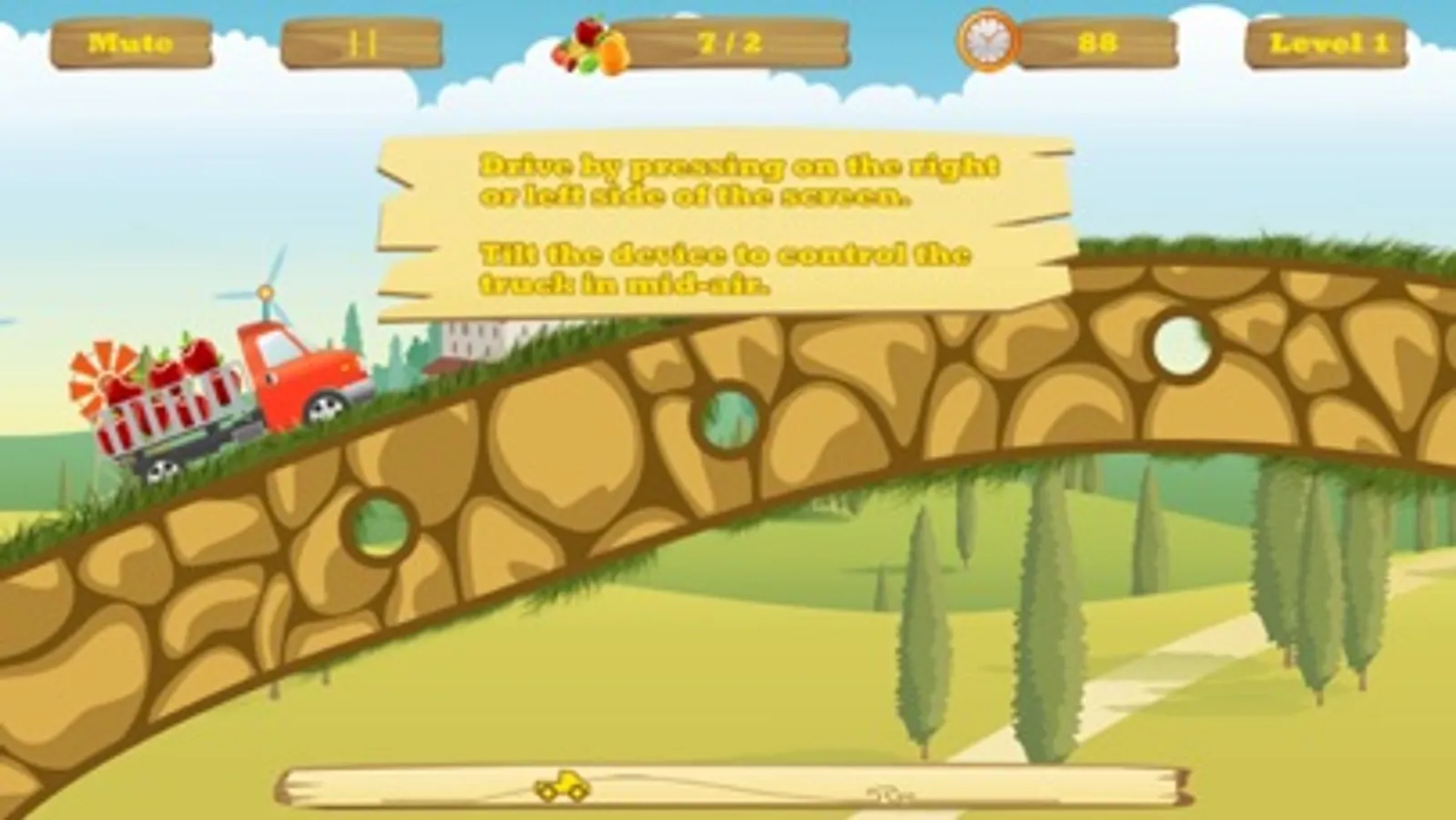 HappyTruck: Explorer - The road is blocked and try your best to use the board, wood and stone to cross it. Of course, you still need to deliver fruits to the marketplace with your truck.