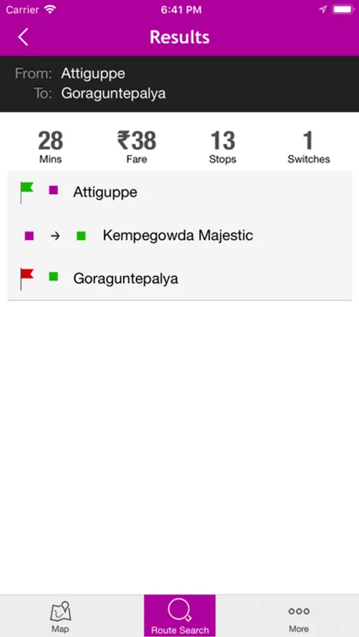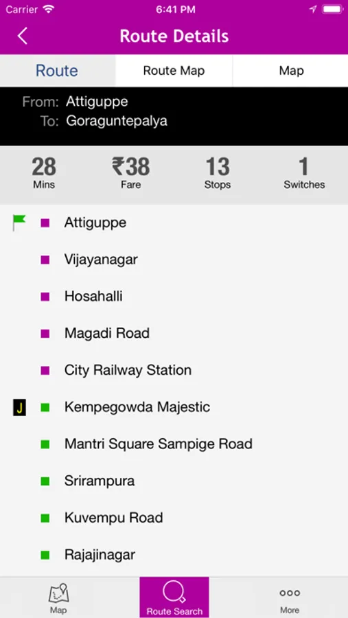 1.Route Search - Provides fare information between two station, total time, number of stops, and number of switches between the intermediate stations.