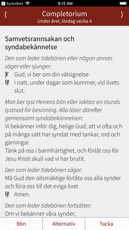 Starta appen och du får direkt upp en tidebön som passar för dagen och stunden. Du kan be när som helst: på pendeltåget, i bilen (såvida inte det är du som kör), på lunchrasten eller i tandläkarens väntrum. Appen innehåller flera smarta funktioner, såsom möjligheten att lägga in egna böneämnen som kommer upp i tidebönerna sedan.