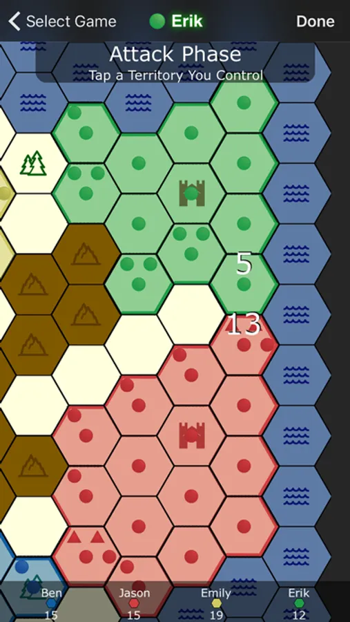 You are able to place two different types of units (one that is better at attacking, and one that is better at defending), and there are six different types of territory: plains, impassable mountains, treacherous water, defensive towers, cunning forests, and unit production centers.