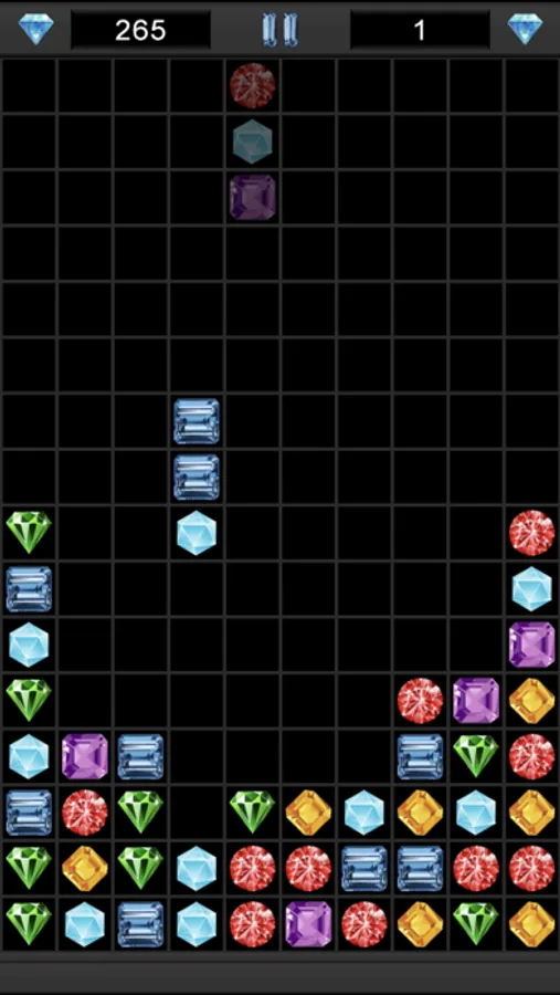Remake of classic "Columns" game. Manipulate falling columns to form vertical, horizontal, or diagonal lines of 3 or more of diamonds of the same color. Try to clear as many diamonds as possible.