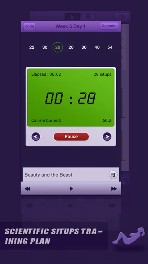 ⁃ Music plays, make it more fun when you are doing situps.