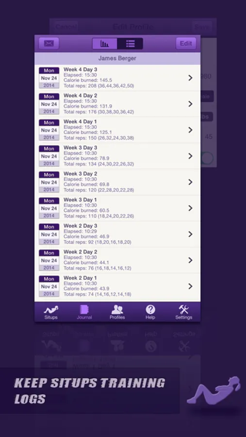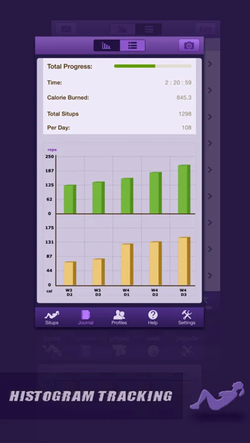 ⁃ Graphical log of your each situps and calorie burnt.