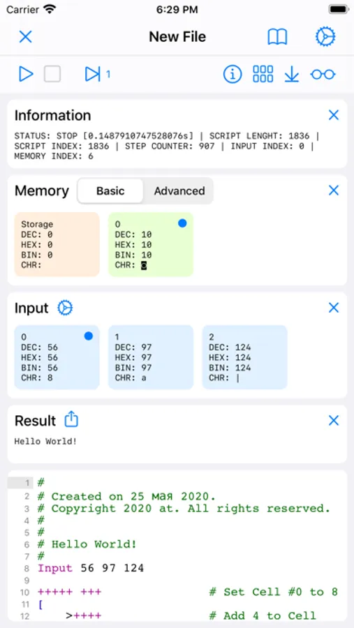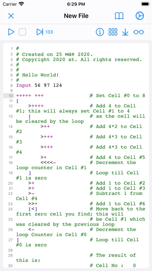 Brain***k IDE is an esoteric programming language created in 1993 by Urban Müller, and is notable for its extreme minimalism.