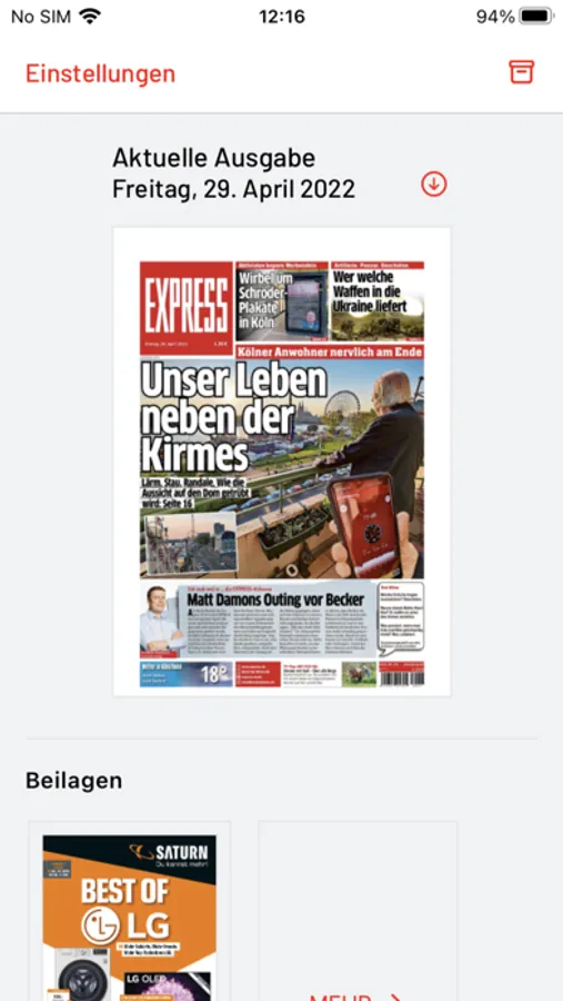 • Greifen Sie auf das 30-Tage-Archiv zu und entdecken Sie vergangene Ausgaben des EXPRESS