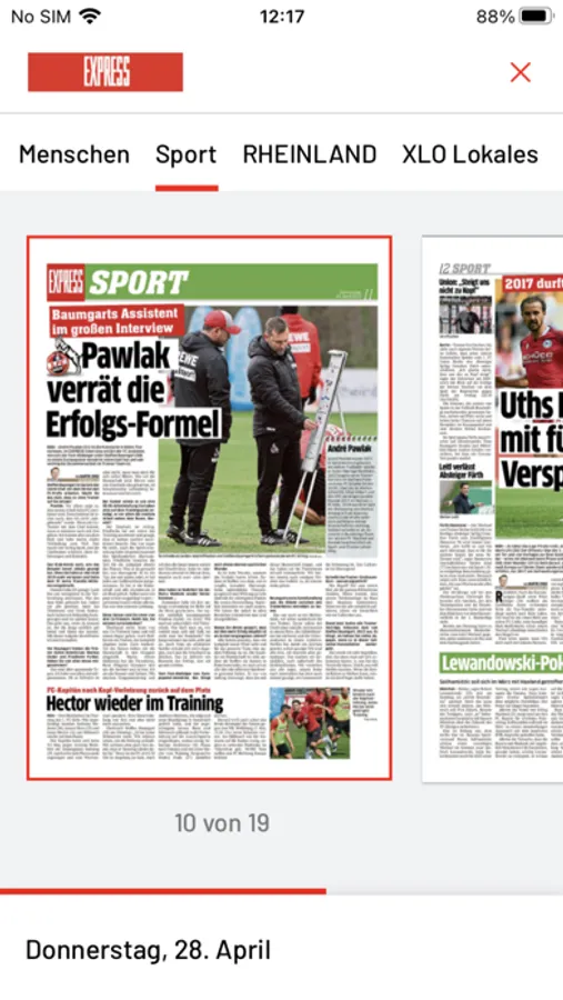 Mit der EXPRESS E-Paper App haben Sie Ihre Zeitung immer griffbereit, schonen dabei die Umwelt, können flexibel lesen und von praktischen Funktionen wie Zoom und Teilbarkeit des Accounts profitieren. Erleben Sie den EXPRESS - sieben Tage in der Woche: von Montag bis Samstag am Sonntag der Sonntag-EXPRESS.