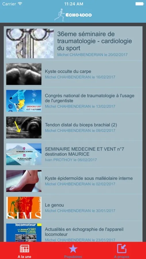 Destiné aux cliniciens qui s'intéressent à l'imagerie ultrasonore, ECHO-LOCO diffuse chaque semaine une news pour les informer des dernières actualités (ouvrages parus, congrès, stages, réponses aux questions, conseils aux patients, outils informatiques ...)