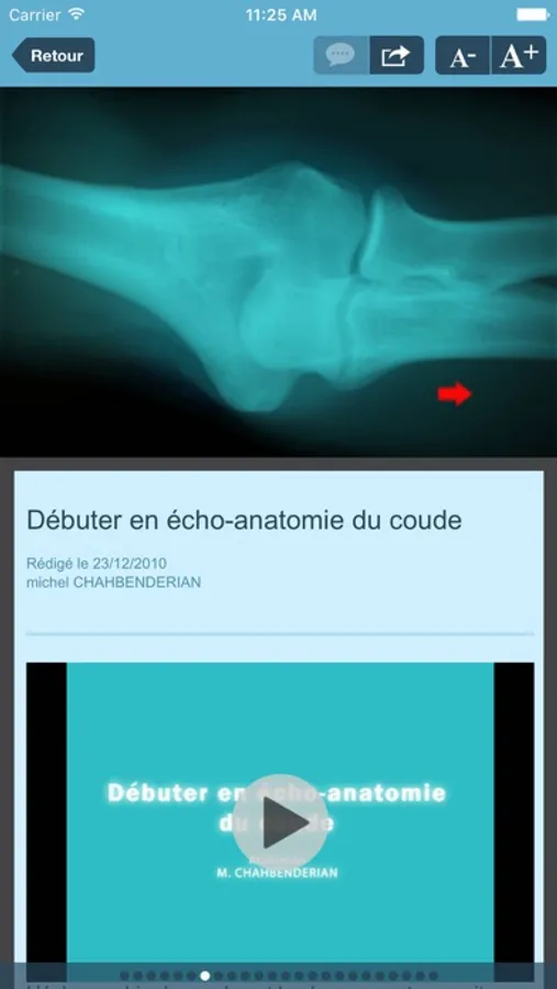 L'épaule, le coude, le poignet, la hanche, le genou, la cheville et encore d'autres territoires sont explorés à la lumière des ultrasons. Ainsi, a la date du 23/12/2016, 310 films sont mis en ligne, totalisant plus de 30 heures d'enregistrement !