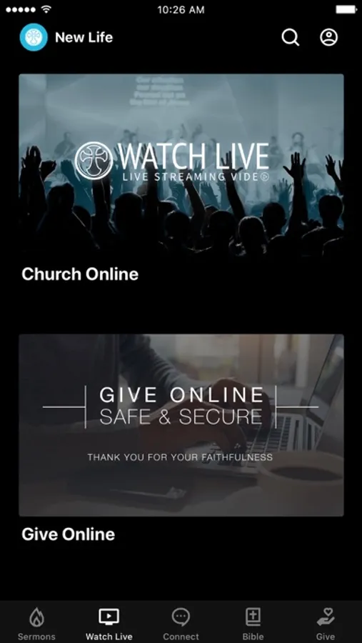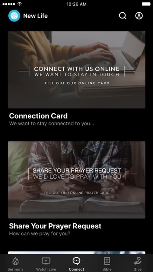 The NewLifeCT app was developed with Subsplash App Platform.
