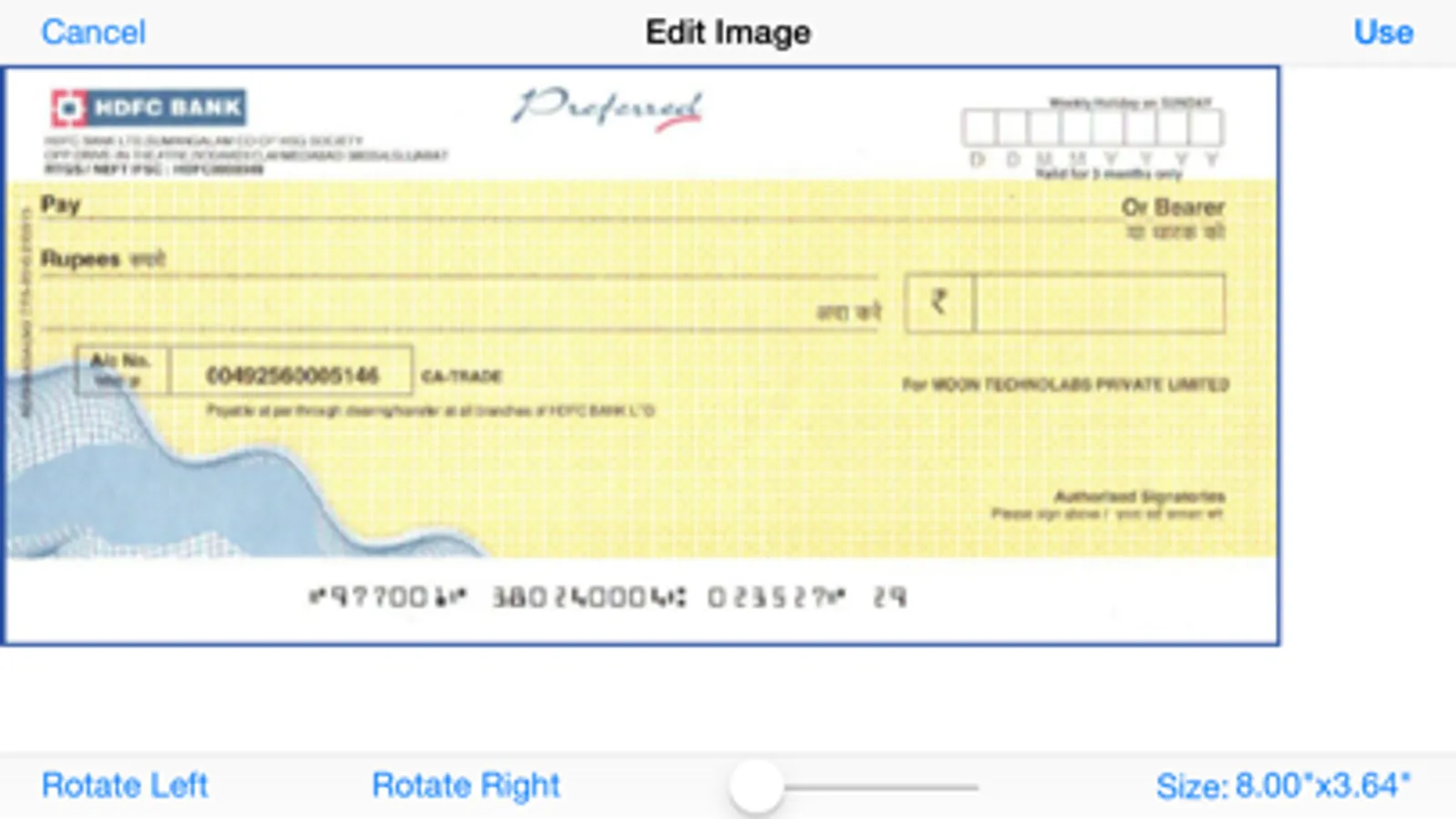 - Auto detects cheque size from your cheque Image, you can edit manually too