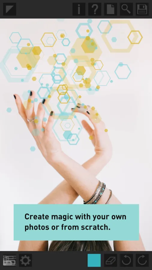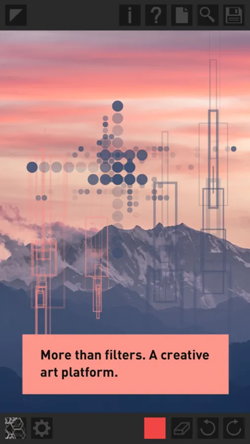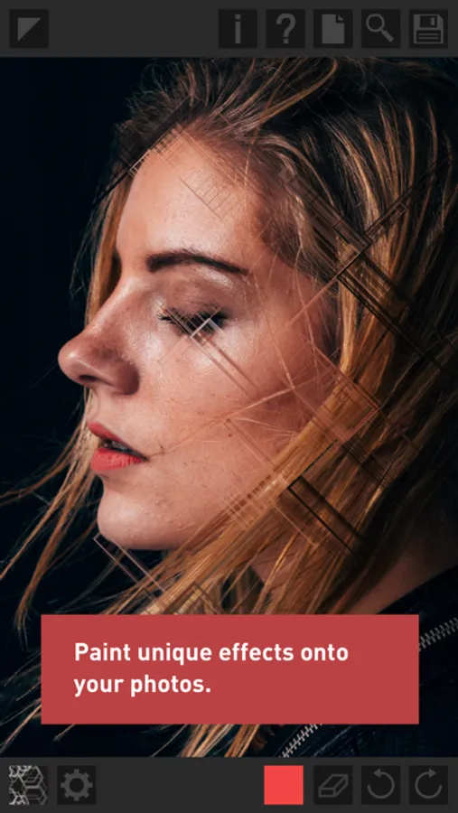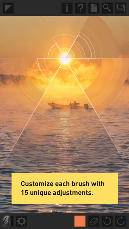 Paint unique effects onto your photos using 130 geometric styled brushes each completely customizable with 15 adjustable settings.