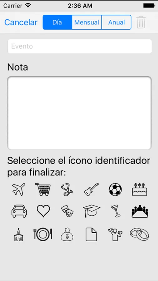 - Marcar un día en particular, con un ícono, para señalar eventos tales como cumpleaños, aniversarios, conciertos, partidos de fútbol, etc.