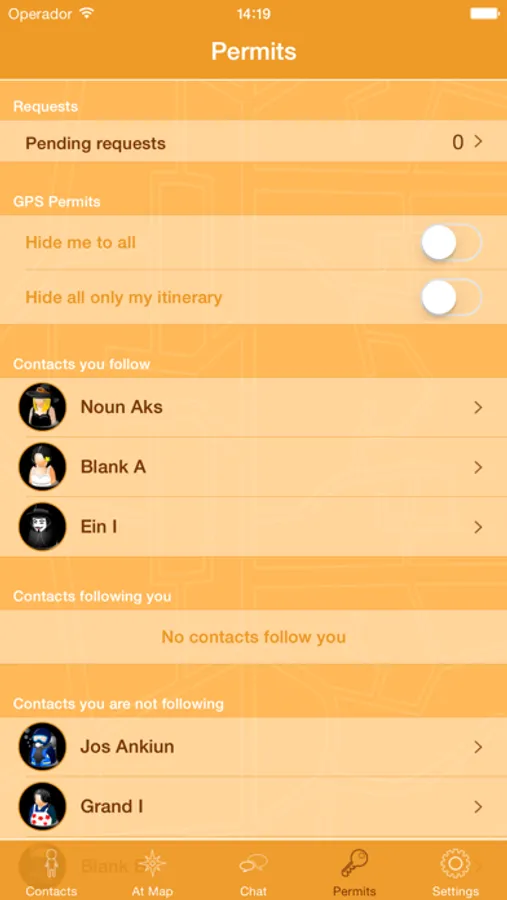 • Individual permits for your followers and for the contacts that follow you.